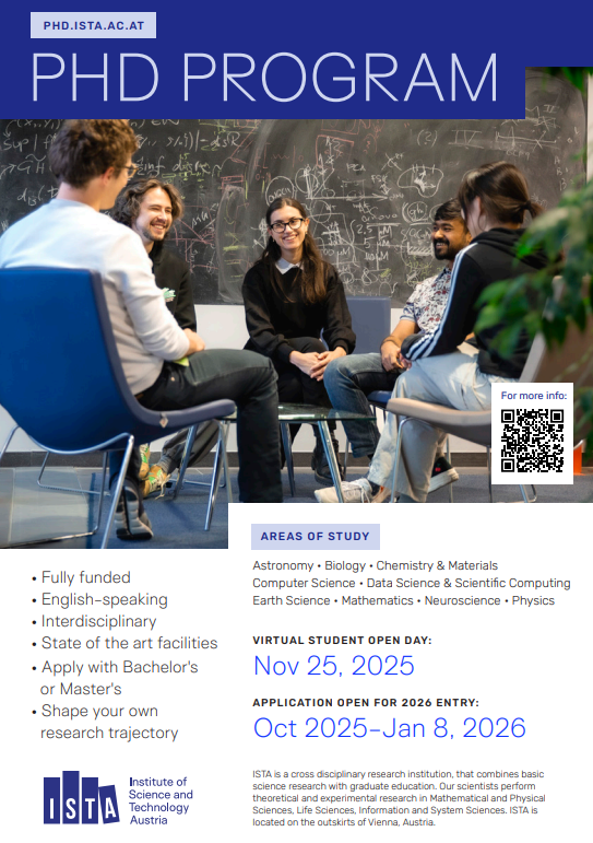 - Poster on the Physics & Astronomy & Earth Science cluster in the ISTA PhD program